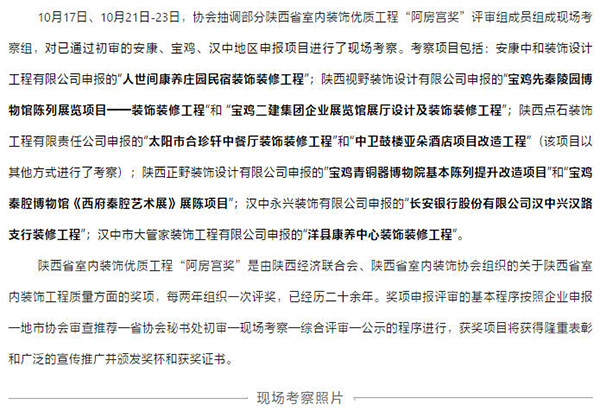 陕西省室内装饰优质工程“阿房宫奖” 评审组赴安康宝鸡汉中现场考察申报项目