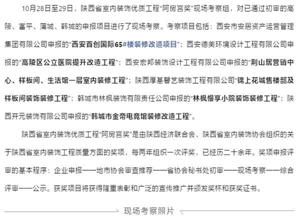 陕西省室内装饰优质工程“阿房宫奖”现场考察组赴高陵富平蒲城韩城考察申报项目