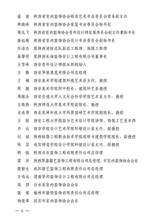 陕西省室内装饰协会第七届理事