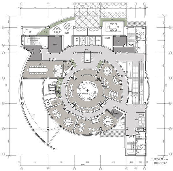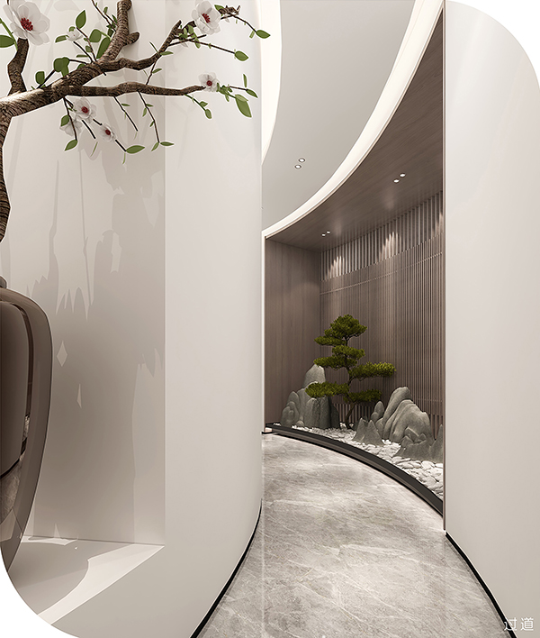 纳自然之形,建空间之意,表现代科技与优雅艺术之融合,设计风格定位为现代中式风格,营造一个体验式、创新现代空间。空间通过流动产生,曲线造型作为空间的造型元素,具有形成动态视觉的能量,生成一种“灵动感”的空间形态,具有了科技感、运动感,产生为人所感知的现代优雅空间。