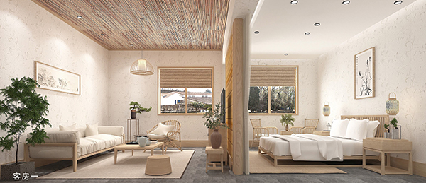 本方案藉由民宿《终南逸》的主题命名,以“竹”为核心设计元素,巧妙运用竹材料对空间进行流线规划、视线遮挡和建筑连廊错落结构的形态构建,以竹对话建筑与空间,并贯穿整个庭院。“以竹造园,竹因园而茂,园因竹而彰;以竹造景,竹因景而活,园因竹而显。”以光与影抒发自然与雅趣兼具的山野隐逸情怀。同时,庭院景观设计通过山石造景和植物、园艺、水系,建筑、山水、植物有机融为一体,在空间形态的构建上手法力求开阔、硬朗,并同时采用玻璃幕墙的增加空间通透性,“传统与现代”、“拙野与舒朗”、“自然与灵动”相互交融,构建一个轻松恬淡、闲适安逸的山野隐逸之所。