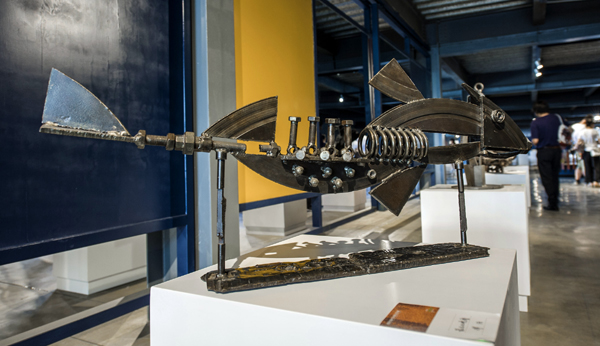 “这些来自远古与现代的造型,让本来已经失去生命力和存在意义的冰冷废弃物件起死回生,融化成为具有独特结构和特定内涵的新形象,一个个有温度、会呼吸、有灵魂、会思考的生命体,就这样活灵活现地给人们讲述着一个个艺术与环境的故事。”傅强说。