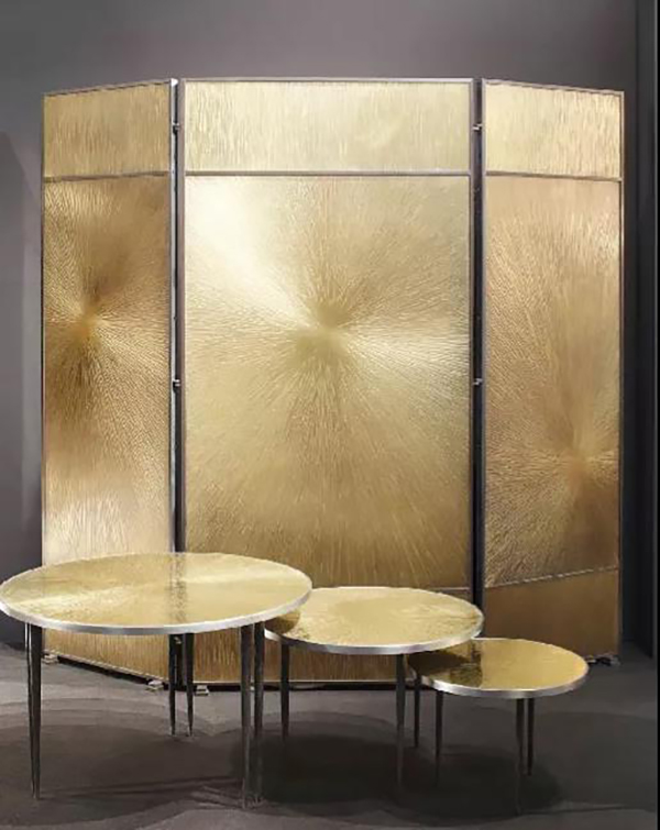 液态金属运用场景很广泛,如:家具、雕塑、艺术品、门、吊顶、墙面、屏风隔断、道具展览展示、LOGO、灯饰、旋转楼梯、水泥柱、GRG......由此可见,它所适用的基材也很多。