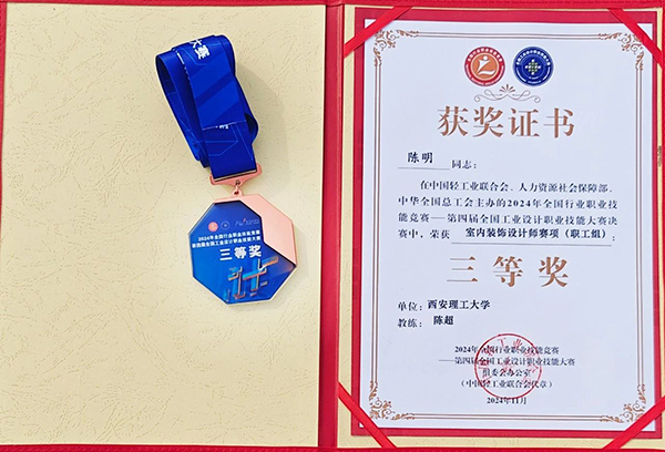 陕西省代表队参加了6个赛项的比赛,共获得2个二等奖、4个三等奖。陕西省代表队获得优秀组织单位。陕西省室内装饰协会选拔推荐的5名室内设计师参加了室内装饰设计师赛项决赛,获得2个二等奖,1个三等奖的优异成绩。中国建筑西北设计研究院有限公司白恒获得职工组二等奖、西京学院学生江启迪获得学生组二等奖、西安理工大学陈明获得职工组三等奖。他们的优异表现,为陕西设计师争了光,为陕西省代表队争得了荣誉。