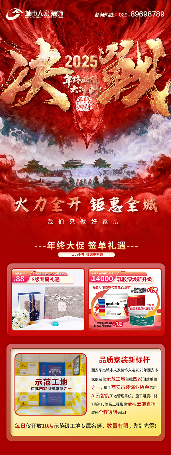 岁末年终之际,西安城市人家装饰年终大促重磅登场,千万补贴加码,大牌家电、万元现金券、金蛋豪礼等多重福利叠加,以满满诚意为消费者送上实实在在的装修惊喜。
