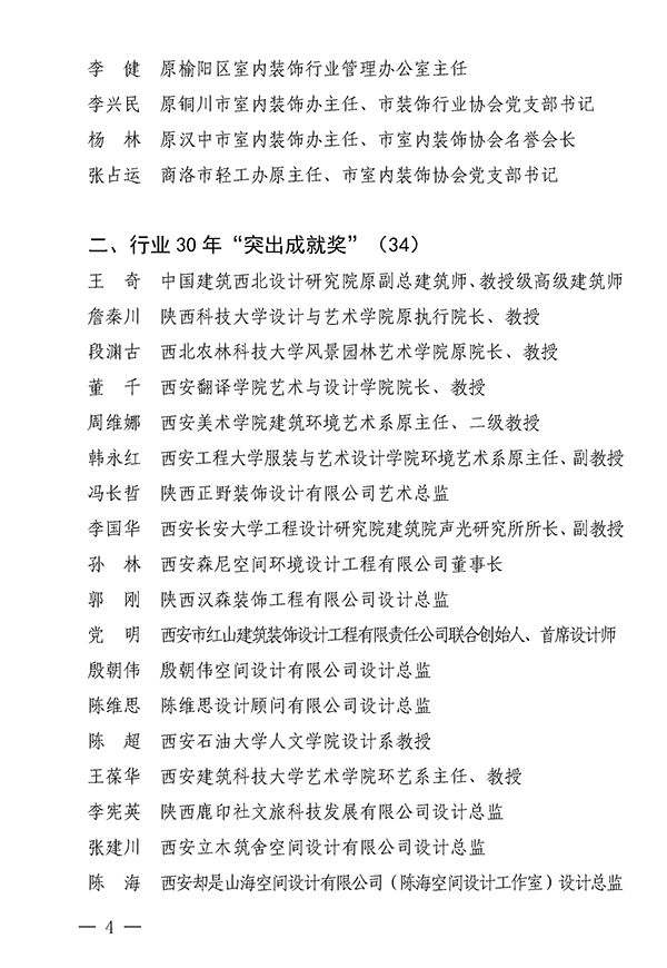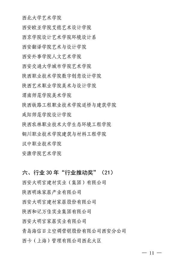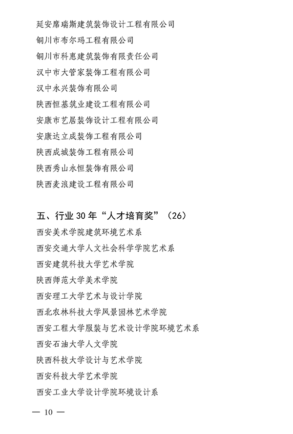 陕西省室内装饰协会关于对“庆祝陕西省室内装饰协会成立30周年评选表彰活动”获奖单位和个人表彰的通报