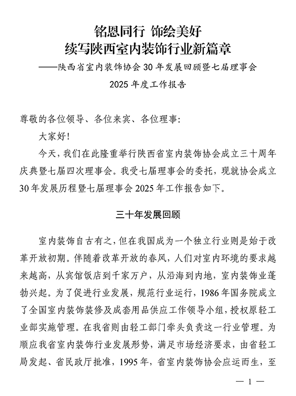 铭恩同行·饰绘美好 续写陕西室内装饰行业新篇章——陕西省室内装饰协会30年发展回顾暨七届理事会2025年度工作报告